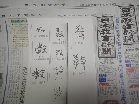 創刊1946(昭和21)5月1日とある、70年になろうとしている、、、教育者はこの新聞の「教」字を見て、何という書体であるのかも理解していないのだろうか、、、あるいは書体という漢字の知識は無くてもいいのだろうか、、、2014/6/11‐未選択‐知過必改‐を再度、