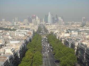 パリ9/3、凱旋門の屋上展望台、新凱旋門(、、、4次元空間から3次元の世界が見渡せるような巨大な門というイメージで設計がなされたという、、、)が見えている、