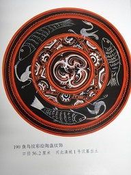p.206‐190「魚鳥紋彩繪陶盤紋飾」・口徑56.2厘米・河北滿城1号漢墓出土