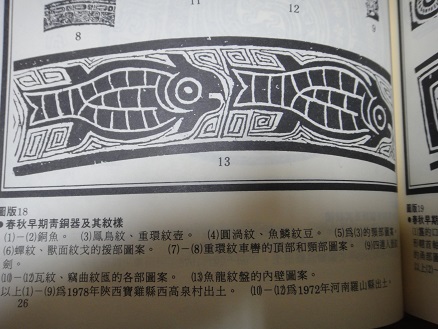 p.26-圖版18-春秋早期青銅器及其紋様-(13)魚龍盤的内壁圖案、