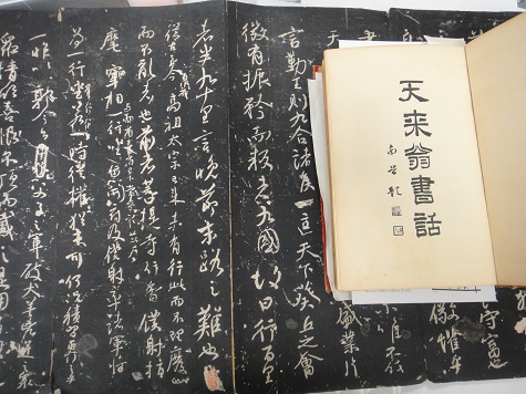 下図、「顔真卿・争座位稿」原拓と、「天来翁書話・南谷題」の頁、