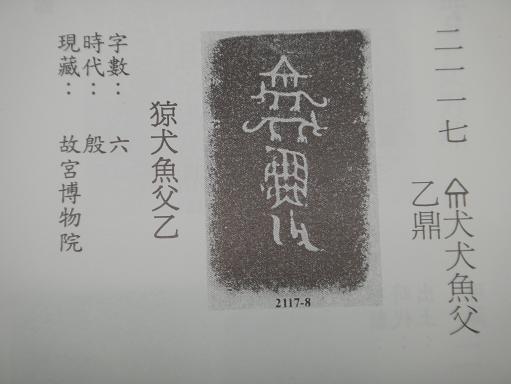 ‐ 「(犭+京)犬魚父乙 ‐ 字數:六 ‐ 時代:殷 ‐現藏:故宮博物院 ‐