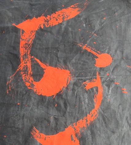 個展(9/12~9/17)作品(1.8m×9m)‐勸酒(于武陵)‐部分「花」草書