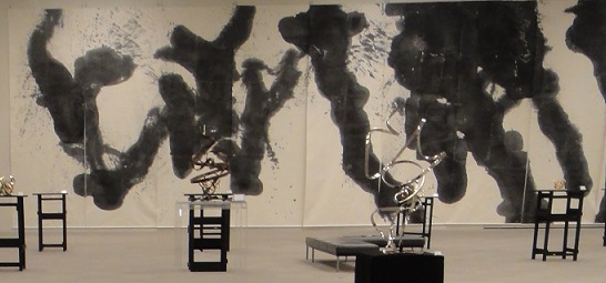 ・前、立体象書作品「希望(のぞみ)」-「無為」-「生命(こころ)」-・後、「群黎移動」作品左半分-甲骨文(渉)字による、...大河を渉る...
