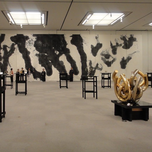・会場:高知市文化プラザかるぽーと7階第1・2展示室、展示室内壁面6m、2次元作品「群黎移動」(5.4m×22.8m)-右3次元作品「こころ(心)」(120㎏)-実際の量態を、空間と立体の美を求めた。