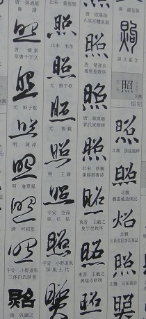 ....古典なき筆意は空虚であり 方法なき書作は盲目である....・左、-3D CALLIGRAPHY「-照-」後にも映る姿-照-もある(アルミ習作)空海-風信帖-より、 ・右、p.614頁 火部 九画 照(ショウ・てる)-新書源 二玄社、