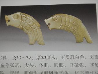 中国古玉器圖典・文物出版社、p.133.134・「魚形玉佩」・商代晩期装飾用玉、