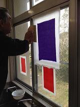 今日の可比丹、―授業にて「裏打ち」―、乾くのを待って印袴の内側と外側に使用、