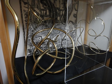 左手前の作品「海」(重量約40㎏)を左側面から写す・・・