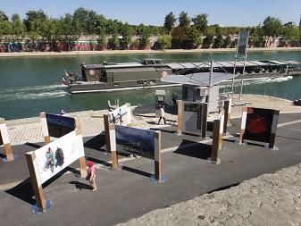 パリの「青い空」の下、セーヌ川の河岸のアート、観光船、、、
