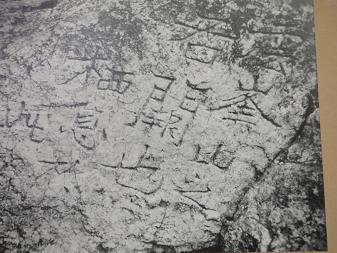 下図、1981年・可比丹撮す、山東省・雲峰山「右闕題字」。