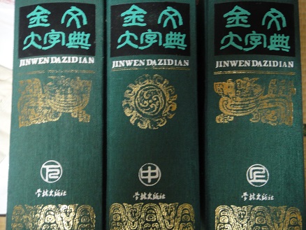 ・「金文大字典」(上・中・下)、 主編:戴家祥 副主編:馬承源 編纂:潘 悠 王文耀 沃興華 扉頁題字:沙孟海 出版:學林出版社 發行:新華書店上海發行所 印次:1995年1月第1版第1次印刷