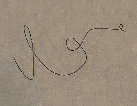 祭姪文稿「心」字を空間で表現し、鉄線で自立させた筆意を上面より写す、