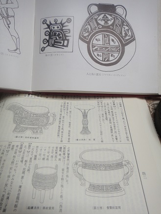 ー【雷文】136 ライブン・ライモン 雷紋に同じ。【雷紋】137 ライブン・ライモン いなびかりのやうに屈折した線でつくる一種のもやう。稲妻形。雷紋匜(ライモンイ)・ 雷紋彝(ライモンイ)・雷紋鼎(ライモンテイ)を見よ。―と、雷紋(西清古鑑)の図もある頁、、、