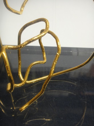下図、立体象書、終筆の部分まで、空間に筆意を造形、どう収束、完結させるのか、彩色は24金にした、、、手で、腕で、全身で創る「書」です、
