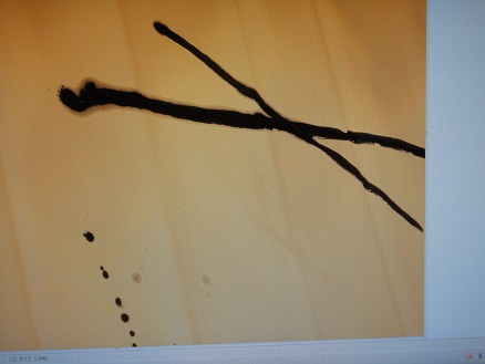 淡墨、、、、紙面に表現された線は、紙質によってちがいが出るのです、たっぷりと筆に含まれた墨量は、墨のいのちを、生きる権利を、持っているんだと主張してしまう、、、一度書かれた墨線に、その上に線を重ねる、その重なった部分は二度目の線を受けつけない、、、下図に交差した部分がそうなのですが(はっきりとは写っていません)、、、線の上に線をつくろうとしでもそれはできないことなのです、、、