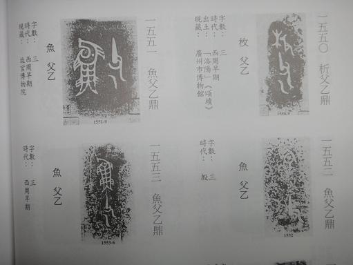 魚羌父乙]一、0340‐[魚羌父乙]二、とある。この2器に、殷代の[魚羌父乙]を並べた頁が、―中国社會化學院考古研究所編 「殷周金文集成釋文」 第二巻 香港中文大學中國文化研究所 出版― 七十八頁にある、