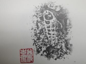 一一頁、青銅器銘文「魚」字の拓、その左下に 「尊古齋」の印、