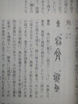 、、、魚は婦人の象徴とされ、婦人の用いる盤には多く魚文を加え、結婚の祝頌詩の発想には釣魚の興をとり、棄婦の詩には必ずその梁笱りょうこう(やな)のことをいい、妻を失った老夫は鰥(かん)、すなわち魚に涙をそそぐ形で示される。-とある