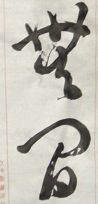 ・左、作品題名「無象の象」入筆部分、顔真卿-争坐位稿--行書より