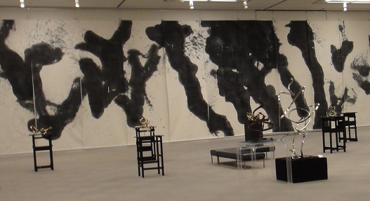 陳列終了。明日初日、是非ご来場を、正面作(23×5.4m)