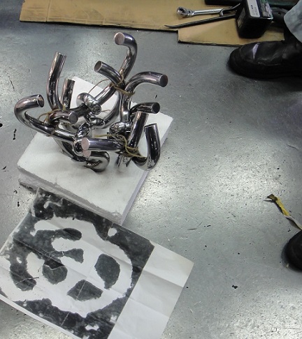 作品「ALOHA」-25㎜鉄丸棒、三か所の固定(溶接でなく)鉄工所にて、