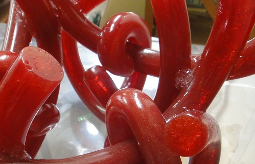 ‐作品(ALOHA)ガラス丸棒(25㎜)部分、西周金文.散氏盤「心」字より