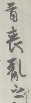 ・・・p.36.37、、、「喪乱帖」の鋭い形の点画における筆の回転やひねりは、観者にスピード感を呼び起こす。その点画は、今まさに書いている瞬間から生まれてくるような、速い律動的な動きの跡を見せる、、、各点画の造型は後に続く点画を予想して処理されている。たとえば、「首」の一画目と二画目の間には、細く白い空間が残されているし、「之」四つの画は、それらの間の内部の空間さえ視覚的な魅力を得るように構成されている。、、、 とある - 米芾「人と芸術」 L.レダローゼ著.塘耕次訳 一九八七年発行 二玄社・・・