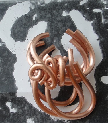 個展作品 ‐ALOHA-、西周散氏盤「心」字、丸銅10㎜・磨き(180番)の段階