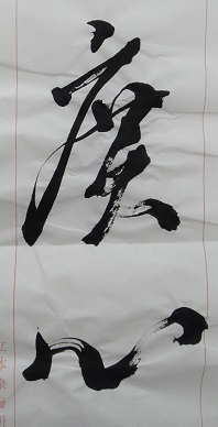 ・左、顔真卿-祭姪文稿-- 3D CALLIGRAPHY-習作-心-の方向を変えて(始筆を下に終筆を上にした形)、  ・右、(半紙臨書)-弘法大師 金剛般若経解題より -廣心-