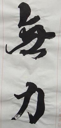 ....古典なき筆意は空虚であり 方法なき書作は盲目である....・左、-3D CALLIGRAPHY「無為-無-」-顔真卿-争坐位稿、・右、-半紙臨書(無力)-光明皇后-杜家立成雑書要略(正倉院御物)
