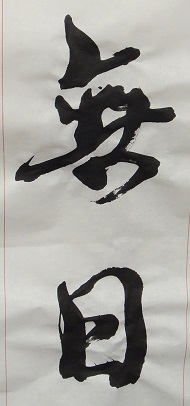 ....古典なき筆意は空虚であり 方法なき書作は盲目である....・左、-3D CALLIGRAPHY「無為-無-」、-顔真卿-争坐位稿、・右、-半紙臨書(無日)-光明皇后-杜家立成雑書要略(正倉院御物)