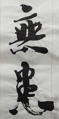 ....古典なき筆意は空虚であり 方法なき書作は盲目である....・左、-3D CALLIGRAPHY「無為-無-」、-顔真卿-争坐位稿、・右、-半紙臨書(無患)-残紙-西域出土