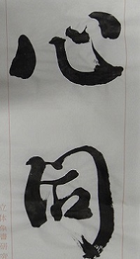 ....古典なき筆意は空虚であり 方法なき書作は盲目である....・左、-3D CALLIGRAPHY「こころ-心-」、-顔真卿-祭姪文原、・右、-半紙臨書(心同)-光明皇后-杜家立成雑書要略(正倉院御物)