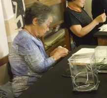 紙縒制作中。昔の方は作り方を、おじいさんおばあさんに教えてもらったと聞きますが、さすがです、上手に作られていました!