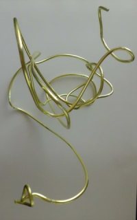 2.5mm×2m(黄色)の針金使用。前回、太さ2㎜くらいの針金がちょうどいい?と書いたが、針金は太め2.5㎜を選んだ方が、動きが大きくとれていいかな、、、