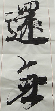 ....古典なき筆意は空虚であり 方法なき書作は盲目である....・左、-3D CALLIGRAPHY「無為-無、」-顔真卿-争坐位稿、・右、-半紙臨書(還無)-光明皇后-杜家立成雑書要略