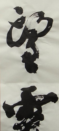 ....古典なき筆意は空虚であり 方法なき書作は盲目である....・左鉄線-三次元立体象書作品「希望(のぞみ)」-(望)-空海(風信帖)、・右墨線-半紙臨書(望霊)-嵯峨天皇宸翰唐李嶠詩集(現在は御物)、