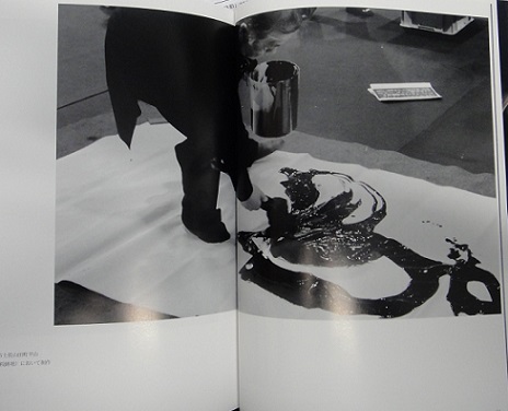 「立体象書(りったいしょうしょ)」2017年9月12日 初版発行-p.16.17写真より、高知県香美市土佐山田町平山(旧平山小学校跡地)において制作、-(2014年)顔真卿・争坐位稿、毛筆により「真」の後半部分を臨書している。