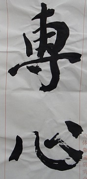 ・左、顔真卿-祭姪文稿(-心-)より - 3D CALLIGRAPHY-作品題名「こころ」- 、-立体象書には、古典(筆意)を摑み出す瞬間に、正面・側面・上面(三次元)が存在する-、 ・右(半紙臨書)-傳橘逸勢 三十帖冊子 -専心-、 ・・・p.10-「顔眞卿の書學」- 顔眞卿の血統は曾祖父勤禮以來能書家ぞろいで勤禮は篆籀(てんちゅう)の書の工みで最も訓詁に精しく、祖父昭甫も訓詁に明らかで篆籀草隷に工みであり、父惟貞も草隷を以て著名であったと云う。伯父元孫は干祿字書の著者として有名であるが、彼も亦最も草隷を善くした。、、、(靑木正兒)-とある。-書道全集第10巻 中國.唐Ⅲ.五代 昭和31年發行 平凡社・・・