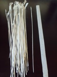 紙縒(こより)を捩じり、ハサミで切ると断面は円形(2次元から3次元)!。会津八一の考える書の線と同じになった。