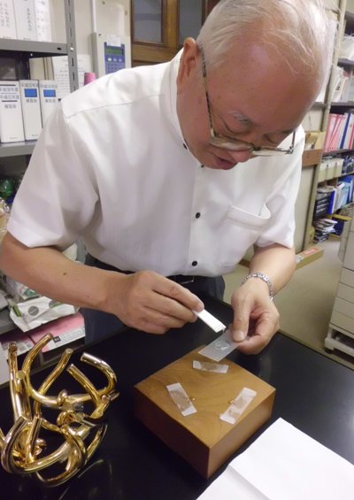 芝一丁目にある、江戸表具の老舗『湯山春峰堂』に、立体作品をもって。