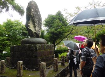 コケが生えて模様のよう、、、と会員の方がおっしゃっていましたが、確かにそうですね~。石の素材を利用した、石碑は作られて何年も経つとともて趣深くなりますね。隷書体で書かれた字も石とマッチしてます。