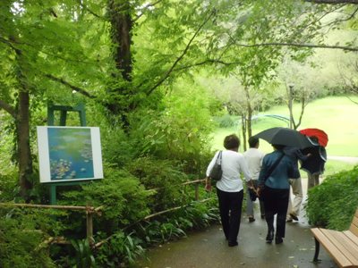みんなでモネの庭にも行きました、土砂降りの雨の中、、、木の下で、雨宿りしながら行きました。